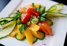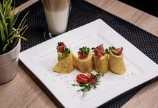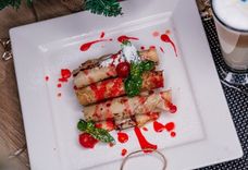 255 г • Нори, рис, крабовые палочки, огурец, помидор, сыр, имбирь, васаби