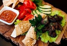 260 г • Нори, рис, лосось,креветка, сыр, соус гуакамоле, имбирь, васаби