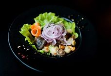 300 г • Лосось, бульон, картофель, морковь, лук репчатый, лимон, специи